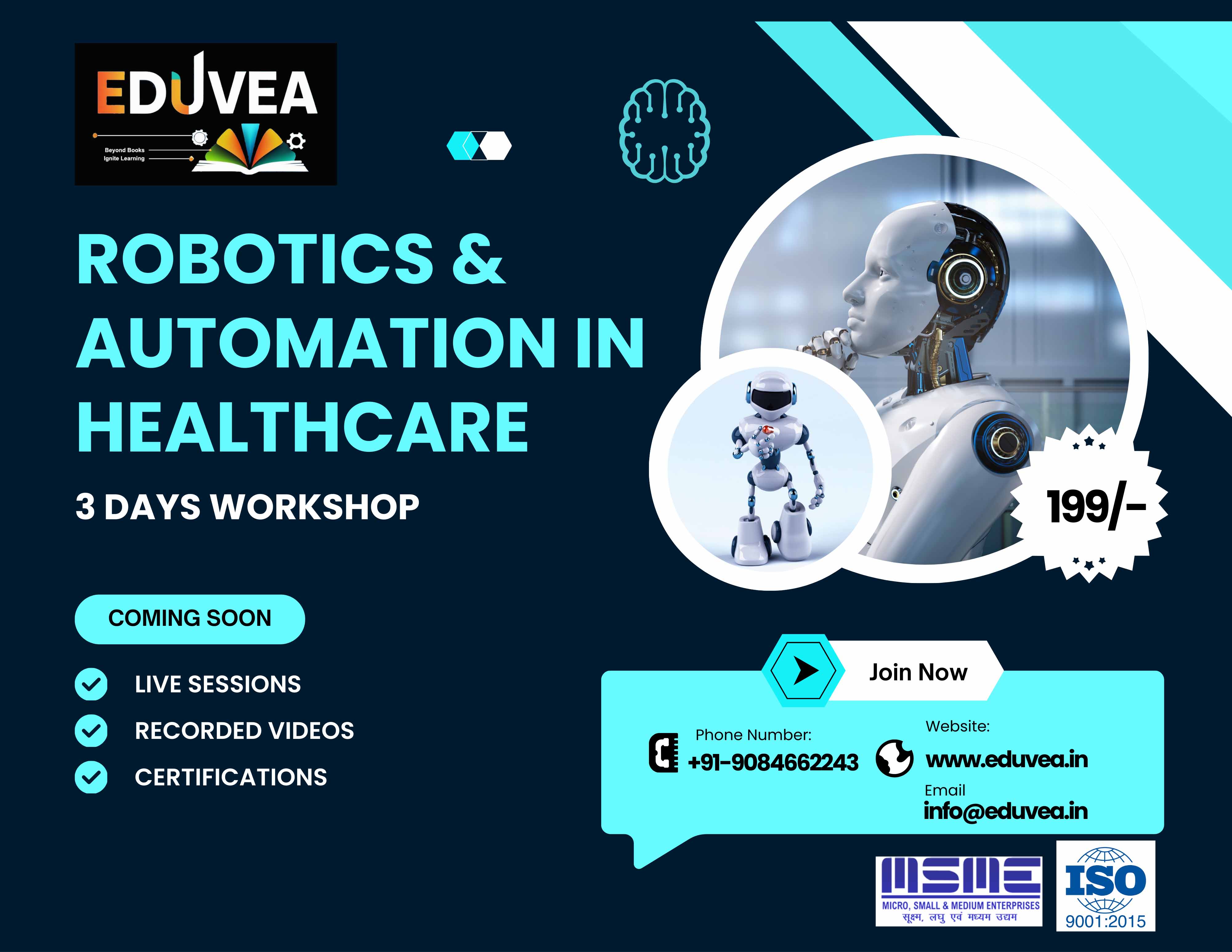 Robotic surgery, automated labs, and AI-based medical devices are transforming patient care. Automation improves accuracy and reduces human error. Future scope: Expanding roles in biomedical engineering, clinical technology, and robotics development. WHAT WE OFFER : Live Sessions Recorded Videos Certification Recommedation Letter