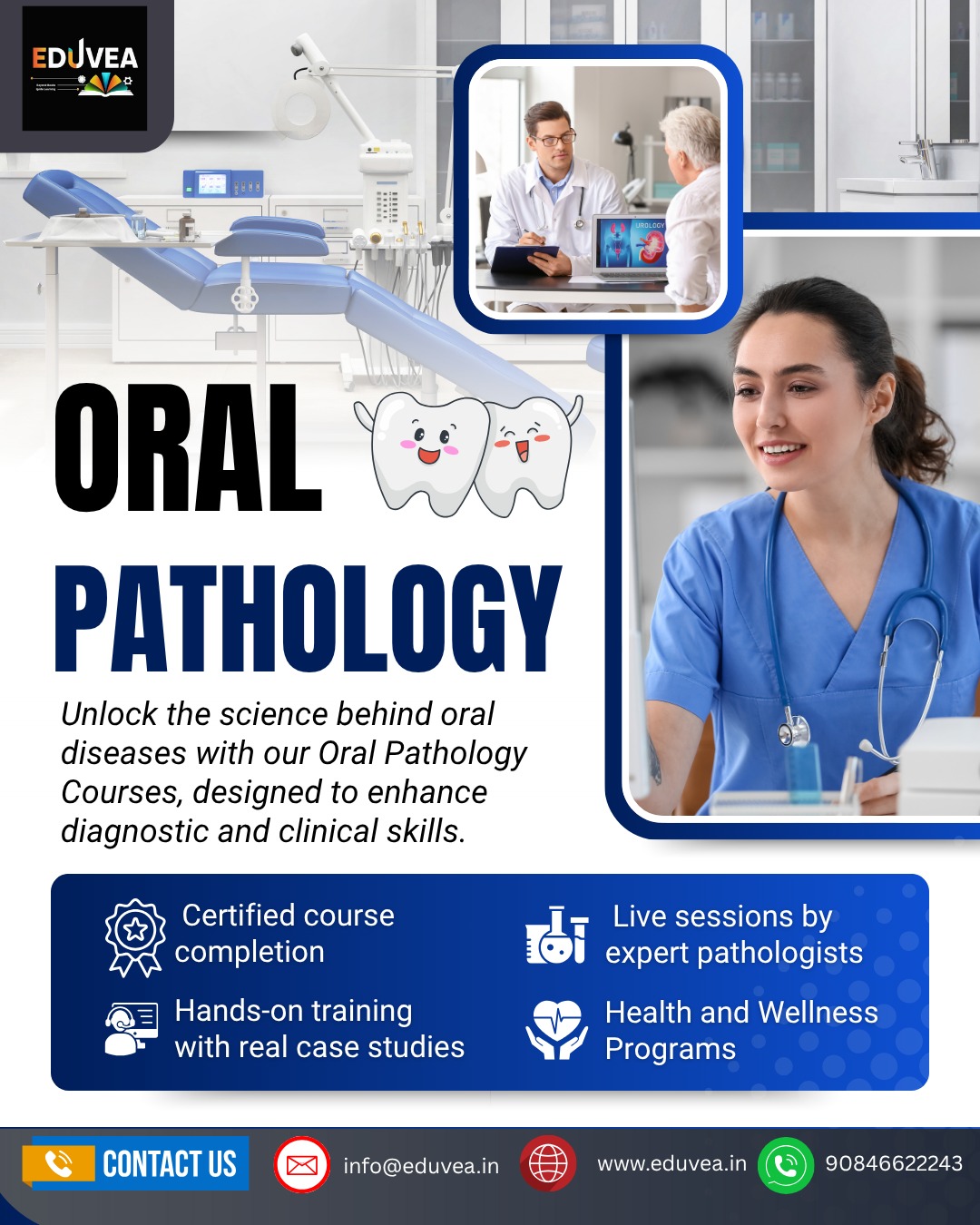 Our 30-day Oral Pathology Training Program is designed to help students and professionals explore the fascinating science behind oral diseases. This comprehensive course delves into the causes, mechanisms, and manifestations of various oral and maxillofacial conditions. Through interactive lectures, hands-on lab sessions, and case-based learning, participants will gain in-depth knowledge of tissue changes, cellular responses, and diagnostic techniques used to identify diseases such as oral cancer, infections, and autoimmune disorders. By the end of the program, trainees will not only understand the pathology of oral diseases but also be equipped with the practical skills needed for accurate diagnosis and clinical correlation. This training offers a unique opportunity to bridge the gap between theory and practice, empowering learners to approach oral health from a scientific and diagnostic perspective.