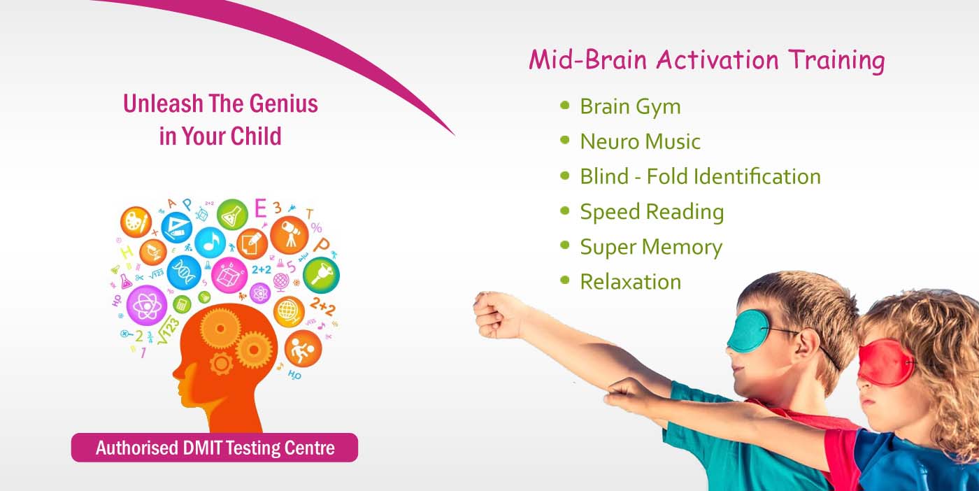 Genuis Gems offers Mid-brain activation courses that are designed to enhance and develop the brain's potential, particularly focusing on the mid-brain, which is believed to be responsible for intuition and other cognitive functions. These courses often claim to improve memory, concentration, and other mental abilities. The concept originates from the belief that activating the mid-brain can lead to heightened senses, improved learning capabilities, and even extrasensory perception (ESP).